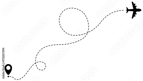 Airplane line path routes. Travel vector icon. Travel from start point and dotted line tracing. Plane routes flight air dotted isolated illustration.