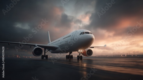 airplane on the runway at sunset
