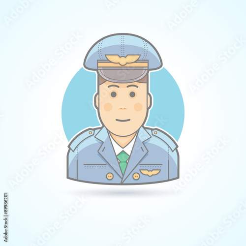 Airplane pilot, aviator icon. Avatar and person illustration. Flat colored outlined style.