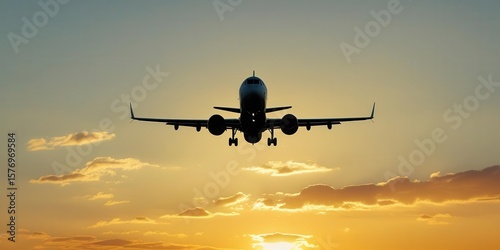 Airplane taking off against sunset sky travel destination scenic view aerial perspective journey inspiration