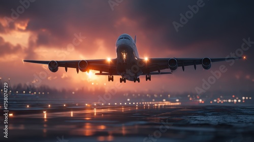 Airplane Taking Off at Sunset | Commercial Flight Travel