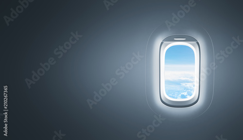 Airplane window with copy space
