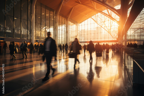 Airport Terminal with People in Motion, Fast Moving Motion Blur, Soft Focus - Global Transit - AI Generated
