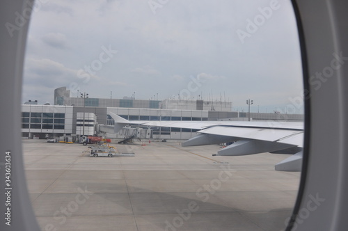 Airport view through the plane window before departure, Houston, Texas