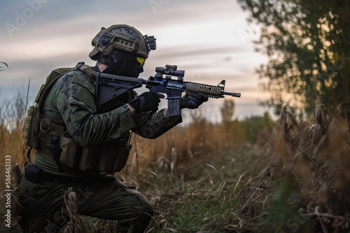 Airsoft Army: Military Simulation. Photo generative AI