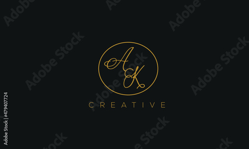 AK is a stylish logo with a creative design and golden color with blackish background.
