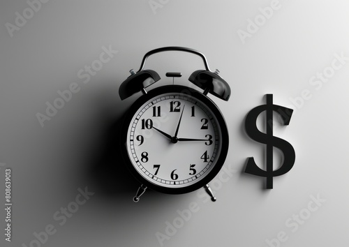 Alarm clock - business symbol - dollar sign, isolated on grey background