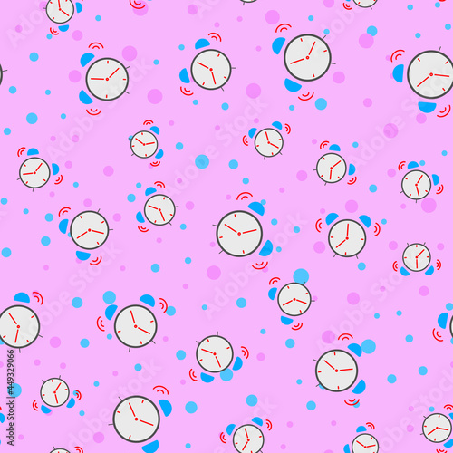 Alarm clock seamless pattern. Back to School concept. Background with time signs. Vector illustration science texture.