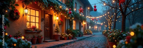 Alberello decorated with fairy lights and ornaments, garlands, fairy lights