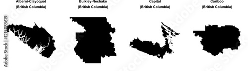Alberni-Clayoquot, Bulkley-Nechako, Capital, Cariboo outline maps