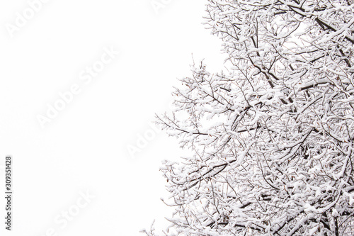 Albero coperto di neve su bianco