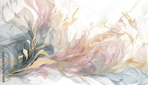 Alcohol ink marble background with floral pattern