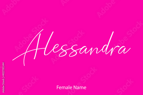 Alessandra -Female Name in Beautiful Cursive Typography On Pink Background