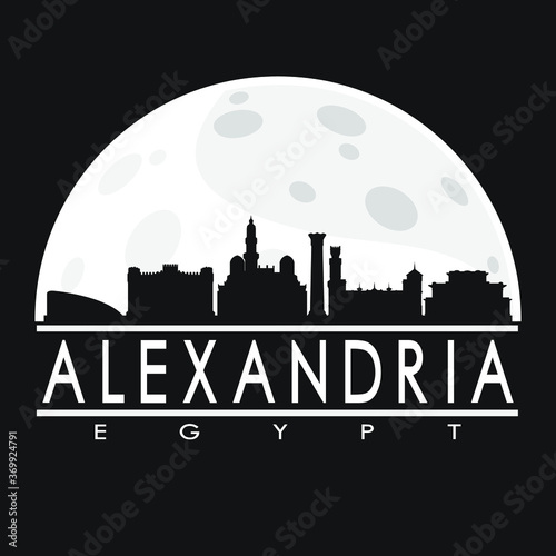 Alexandria Egypt Skyline City Flat Silhouette Design Background Moon.
