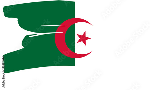 Algeria Flag Waving Green and White Crescent Star Banner