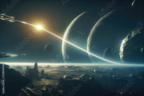 Alien Planet sci-fi outer space encounter wallpaper 3D Illustration with copy space