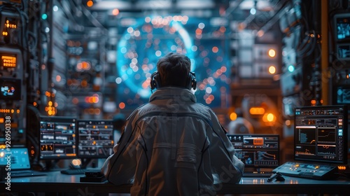 Alien Scientist Conducting Experiments in Futuristic Lab with Advanced Equipment - Space Research Concept for Text Space Below