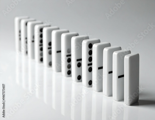 Aligned Dominoes In Row On Light Gray Background