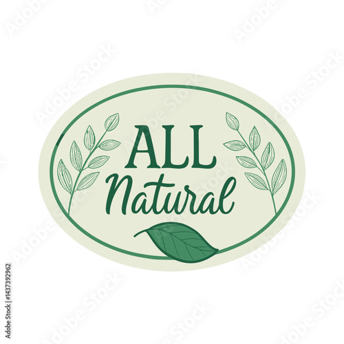 All Natural Label with Leaf Design in Green Color