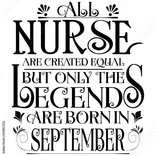 All nurse created equal but legends born in SEPTEMBER:Legends Saying & quotes:100% vector best for black t shirt, pillow,mug, sticker and other Printing media.