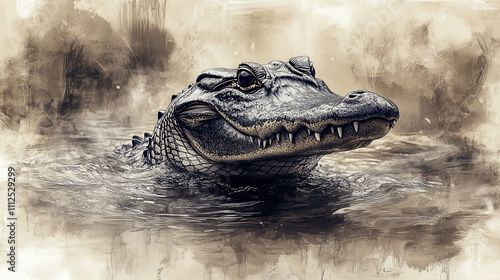 Alligator on abstract watercolor background.