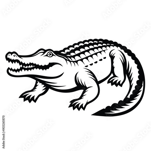 Alligator Silhouette Reptile Profile with Sharp Teeth and Scaled Skin in Black Ink