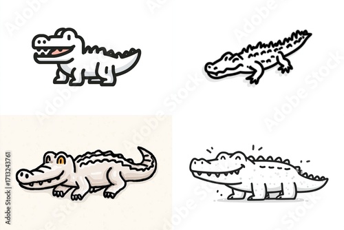 Alligators illustrated smiling and swimming in a swampy riverbed, cartoon-like doodles