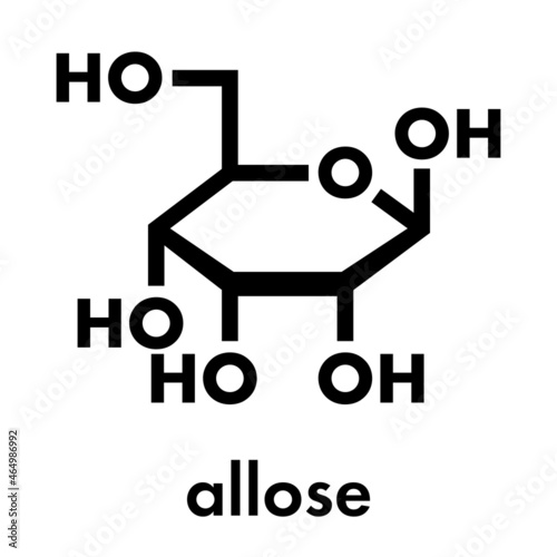 Allose (beta-D-allopyranose form) sugar molecule. Skeletal formula.