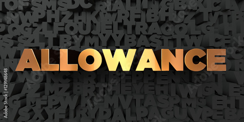 Allowance - Gold text on black background - 3D rendered royalty free stock picture. This image can be used for an online website banner ad or a print postcard.
