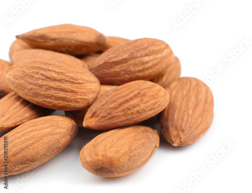Almonds on white background. Nut snack
