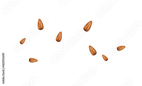 almonds on white background, Whole and split almonds in closeup with natural texture on transparent background