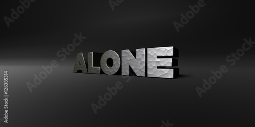 ALONE - hammered metal finish text on black studio - 3D rendered royalty free stock photo. This image can be used for an online website banner ad or a print postcard.
