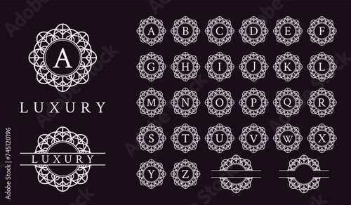 Alphabet collection of luxury ornament flower frame logo. Perfect for boutique, jewelry, hotel, beauty cosmetic, spa, yoga, meditation, wedding, mental health, and the like.