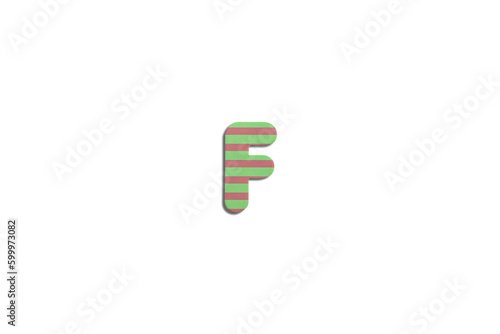 Alphabet letter F on a white isolated background. Top view, flat lay