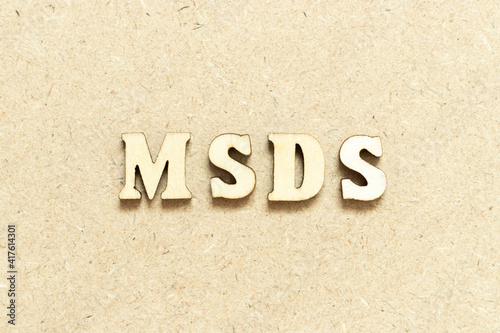 Alphabet letter in word MSDS (Abbreviation of material safety data sheet) on wood background