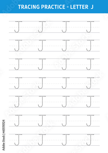 Alphabet Letter J Tracing Worksheet.Alphabet letters tracing worksheet with all alphabet letters.Developing skills of writing.A4 paper ready to print.