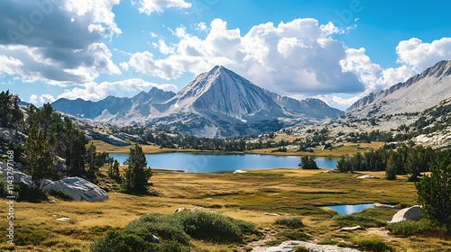 Alpine Lake and Mountain Landscape. Scenic View of a High Altitude Lake Surrounded by Majestic Mountains.