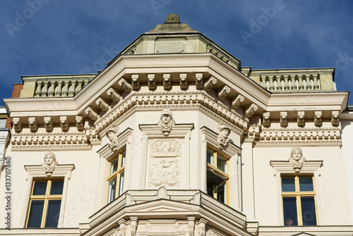 altbau wohnhaus giebel vor blauem himmel old building residential house gable against blue sky