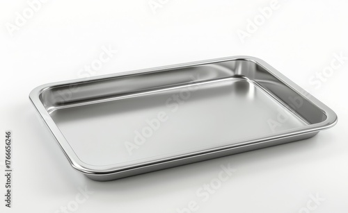 Aluminum rectangular tray with rounded corners isolated on white background, top view. Modern minimalist design, kitchenware, serving platter, food presentation and dining concept.