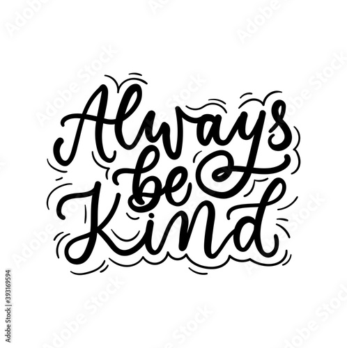 Always be kind inspirational lettering quote with doodles. Kindness motivational quote for textile, prints, posters, greeting cards etc. Vector illustration
