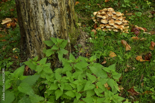 Ama de champignons au pied d'un arbre au parc Tournay-Solvay en automne à Watermael-Boitsfort