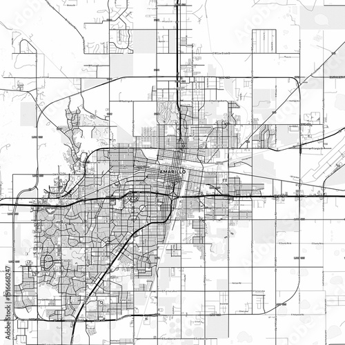 Amarillo Area Map with Labels and Neighborhoods - One color, minimalistic design