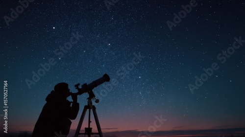 Amateur astronomer looking at the sky with a telescope., no logos, no brands
