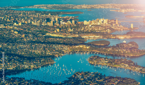 Amazing aerial view of Sydney from airplane on a sunny day, Australia