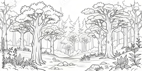 amazing black and white forest coloring. Forest coloring for kids and adults.