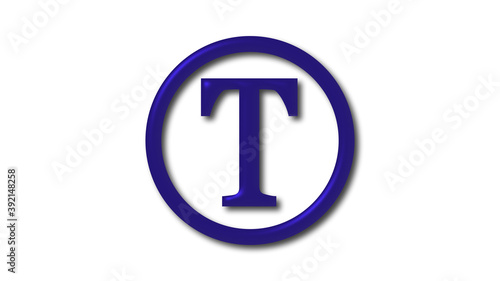 Amazing blue dark shiny T 3d letter logo on white background, 3d letter logo