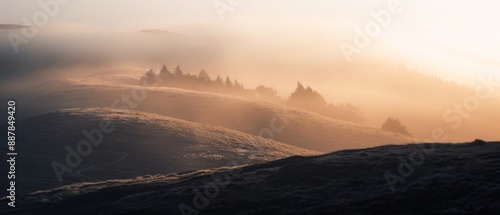 Amazing mystical rising fog forest trees landscape in black forest blackforest ( Schwarzwald ) Germany panorama banner - Dark mood..