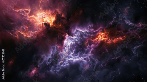Amazing nebula in the universe with shining colorful clouds on outer space background