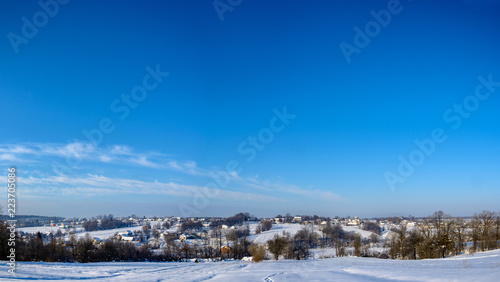 Amazing panorama of the Ukrainian village in western Ukraine in winter