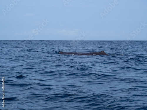 Amazing sunset in atlantic ocean with waves and wildlife dolphins and sperm whales in açores, azores, portugal